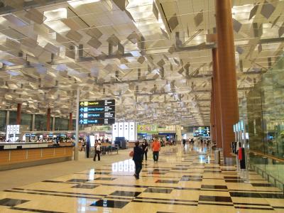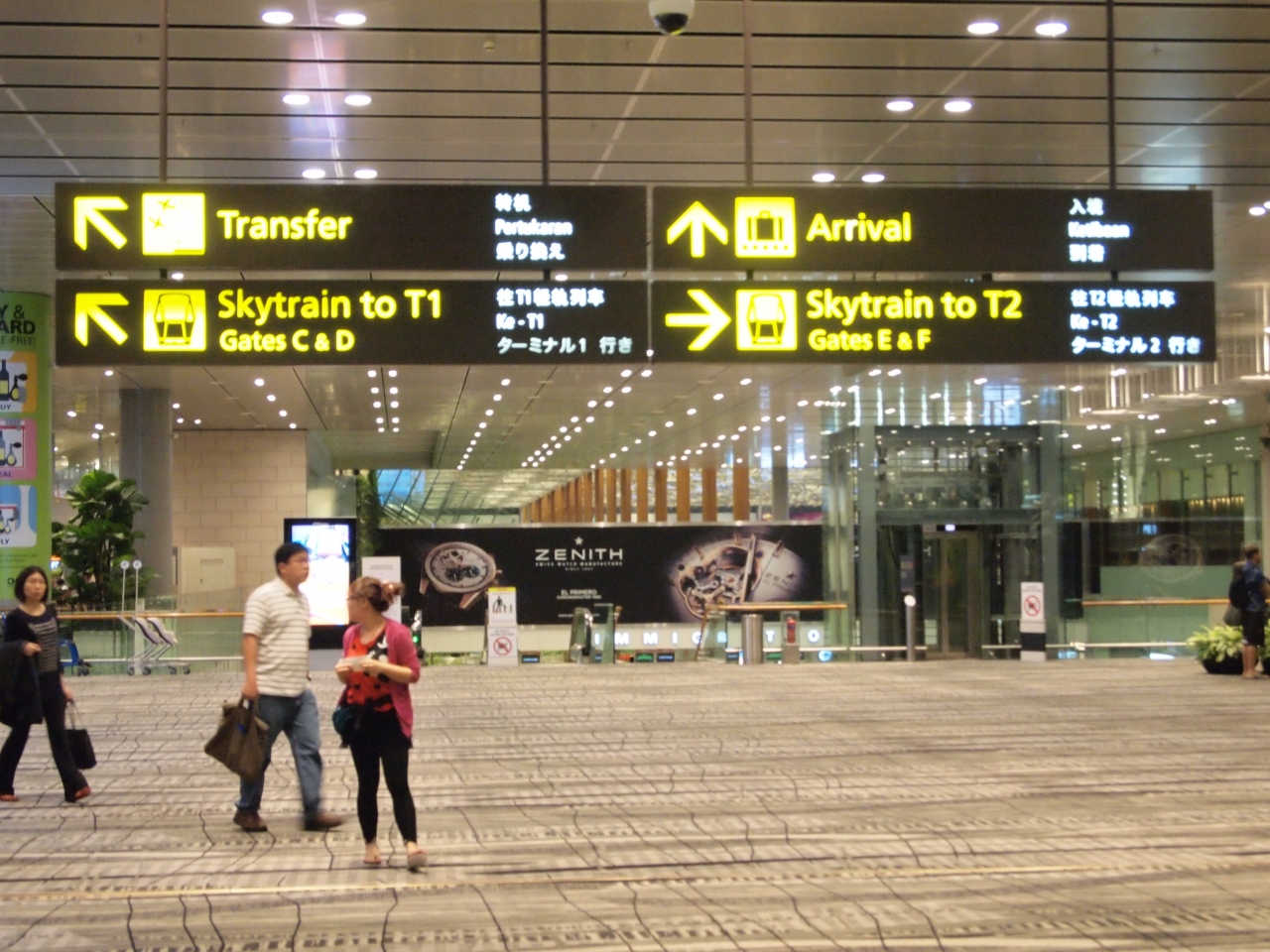 ターミナルは1~3まであってそれぞれスカイトレインで結ばれています。現在、LCC向けのターミナル4の建設が予定されているそうです。私はシンガポール航空利用だったのでターミナル1の様子しかわかりませんが、フロアは広大で歩くだけでくたびれます。飲食や土産物店など随所にあって不自由はありませんが、利用者に対してベンチの数が少なく感じました。それとシンガポールの空港だけあって喫煙室が隅っこのわかりにくいところにあって、夜は照明もありません。