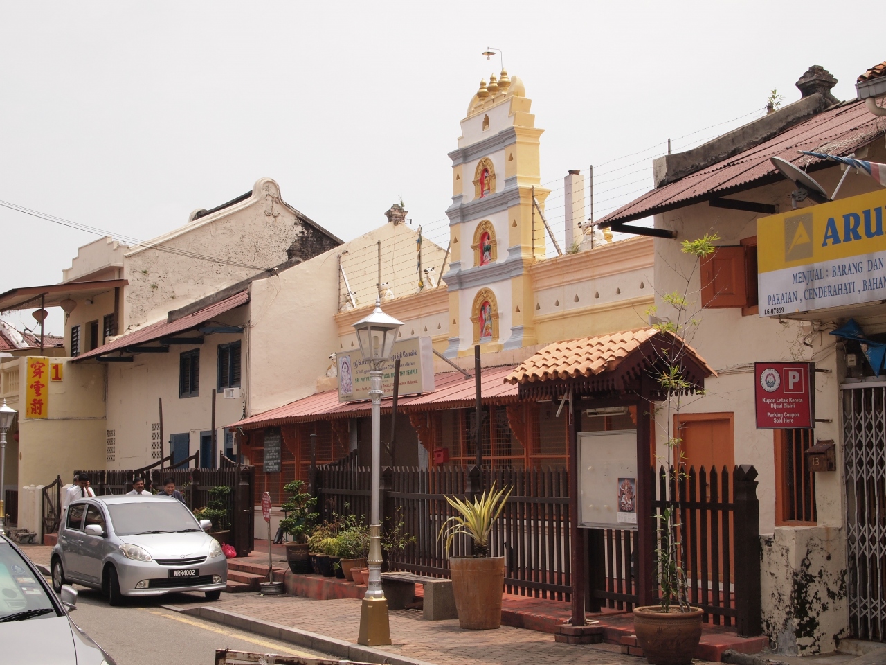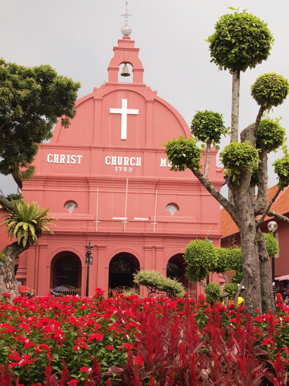 マラッカ観光の中心であり、観光案内の表紙に必ず登場する建築物です。18世紀にオランダによって建てられた木造の教会です。背後の丘の上のセントポール教会はカトリックですがこちらはプロテスタント。多くの観光客と土産物屋、観光客目当てのトライショーで大賑わいでした。