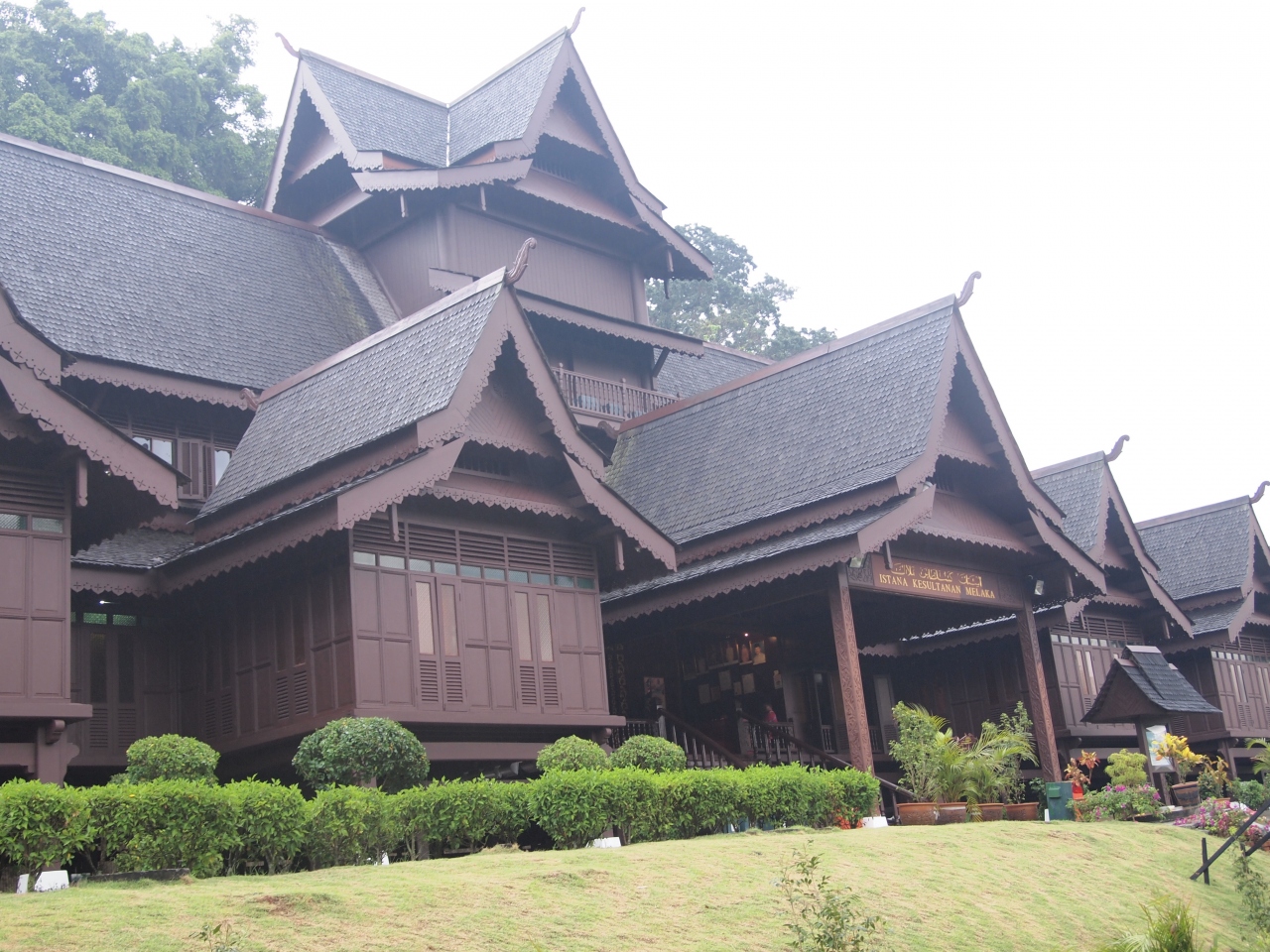 マレーシアは全部で13の州に別れていて、そのうち9州は今でもスルタンによって治められています。この建物は15世紀頃のスルタン(首長)の宮殿を再現したものです。木造で釘を一切使ってないそうです。まず玄関で靴を脱いで上がります。左手に行くとスルタンの前で家臣が集まって儀式をしているさまが再現されています。2階にはお姫様の寝室、各地のスルタンの服や帽子、交易の様子などが展示されています。それなりに見ごたえがあり、昔のマレーシアの一部をうかがうことができます。