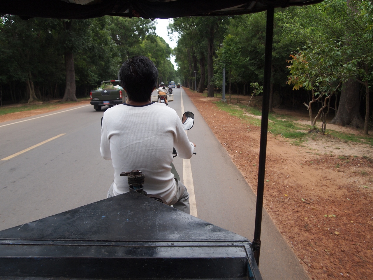 シェムリアップに6日間いました。最初の2日間は空港へ迎えに来てくれたゲストハウス専属のトゥクトゥクにお願いしました。本当は小さな遺跡も行きたかったんですが、面倒くさそうな雰囲気が垣間見えたので運転手に任せて大回り・小回りコースの普通のコースを回りました。その後3日間は自転車を借りて気ままに楽しみました。最終日は別のトゥクトゥクをお願いしてベンメリアとロリュオスへ行きましたが、途中で2度もガス欠になり所持金が無くって金(といっても4200R)を貸す羽目になりました。もちろん返してもらいました。2010年に来た時には割と感じのいい運転手だったので気持ちよく観光できたのですが。