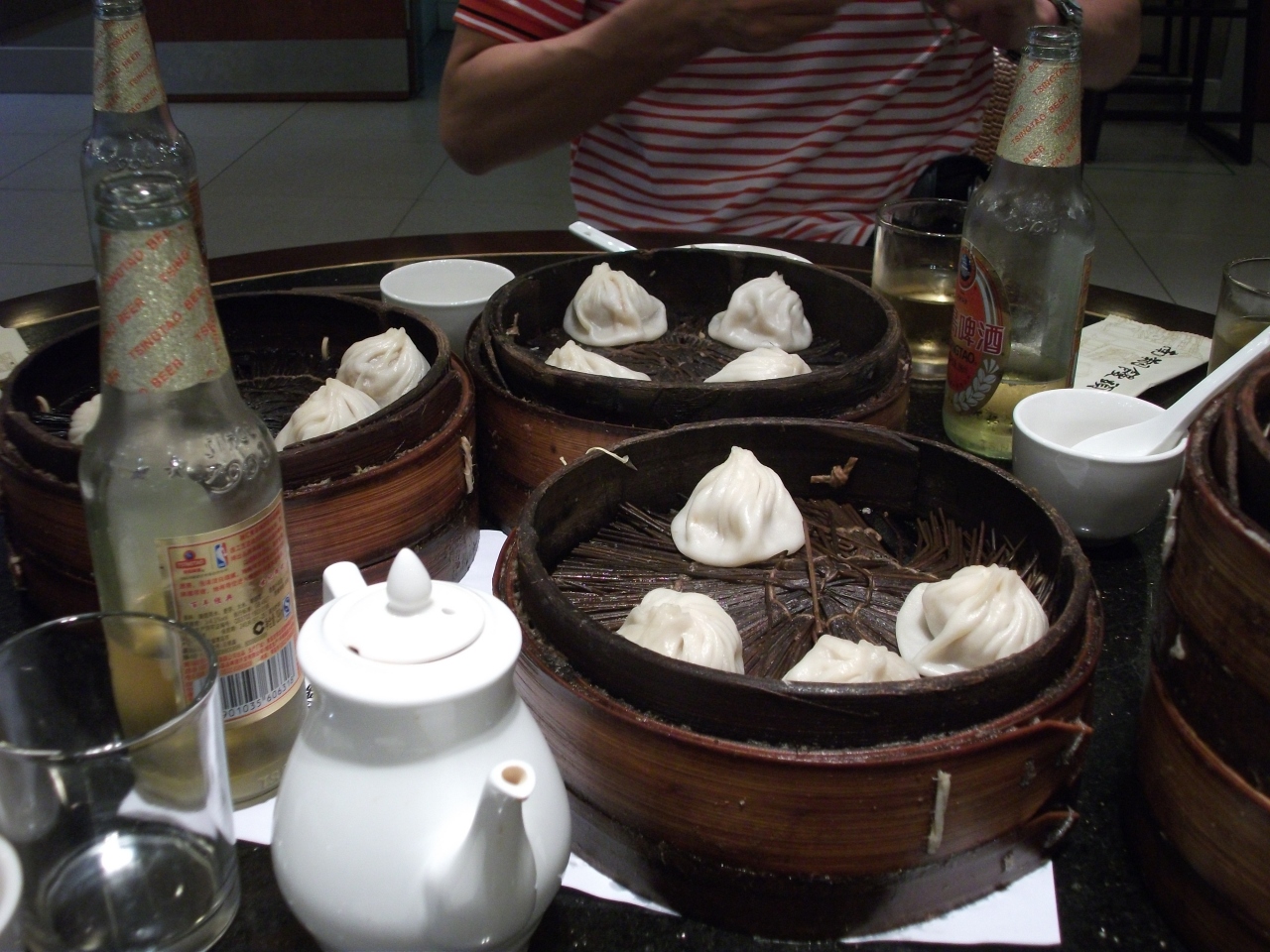 豫園商城の真ん中にあります。行ったらとにかくすごい行列で、人気のほどが知れます。でも行列しているのはテイクアウト目的の人たちで、私たちはそれほど待たずに入れました。席に着くと間髪を入れずお待ちかねの小龍包がドーンと出てきます。熱くて美味しくて夢中で食べてしまいました。