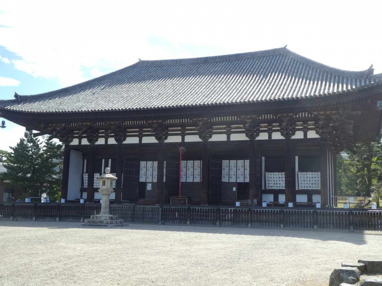 再建なった中金堂の東にある建物です。興福寺には元々中・東・西と三つの金堂があって、いずれも度々火災にあっています。東金堂は室町時代の再建ですが創建時の様式を受け継いでいるようです。内部に入ると須弥壇(しゅみだん)の上には本尊の薬師如来を中心に多くの国宝の仏像が並び圧倒されます。須弥壇の周りは石のタイルですが、スペース的にはやや狭苦しく感じられます。係りの人にお聞きしたら石のタイルは元は緑色で薬師如来の東方浄瑠璃世界を現していたそうです。又、東金堂全体を一つの厨子としてお堂の外から拝むのが本来の姿であったようです。