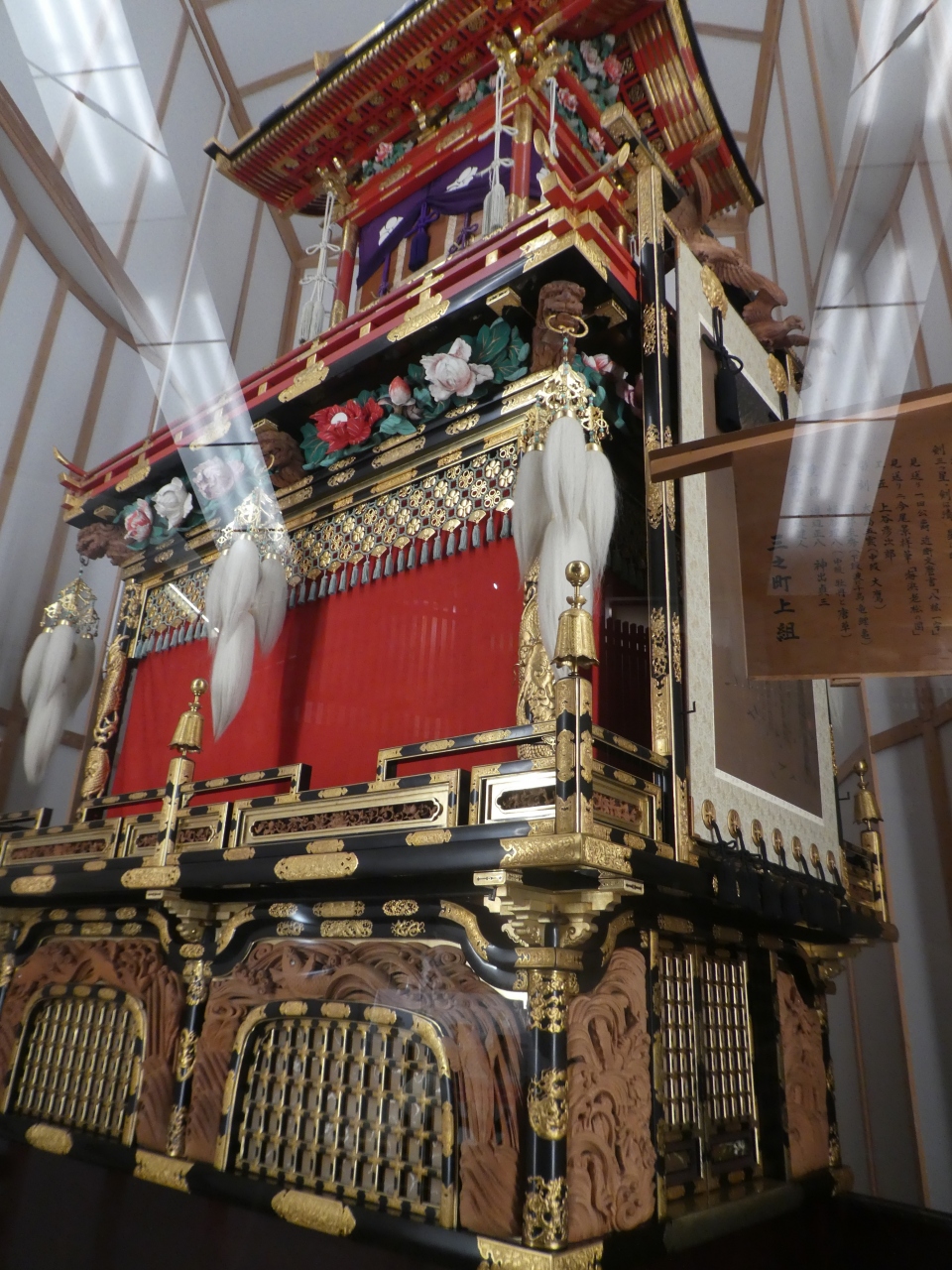 市役所の無料駐車場に車を停めて、すぐ向かい側にあります。朝9時開館ですけど8時半に入れてくれました。古川まつりに使われる豪華な屋台が何台か展示してあります。ほんとうに華やかです。去年も今年もまつりは中止だったようで残念です。館内のシアターでの映像でまつりの雰囲気を味わうことができます。