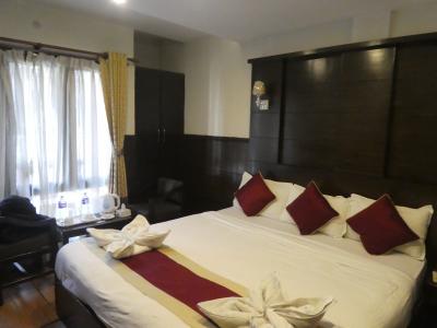 1泊だけしました。タメルの1本西側の通りにあります。値段相応のホテルで、それを考えれば全く問題なし。買い物も食事も至近で間に合います。ダイニングは1階の奥にあります。特に豪華ではないけどそれなりの品数ですけど、暖房がないので寒いです。ジャケット必着です。