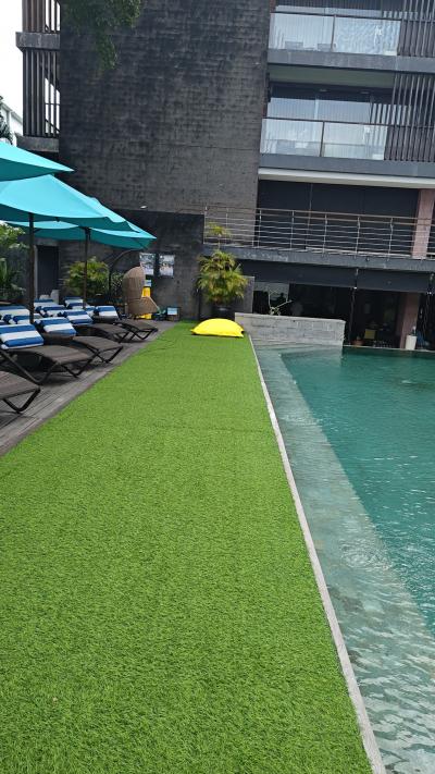 4.0ロビーも食事会場も外でリゾートホテルと言う感じ。プールも広く、フラミンゴ?白鳥?のような浮き輪やビーチバレーのネットやボールなどもあるのでとても楽しめるし良い運...もっと見る