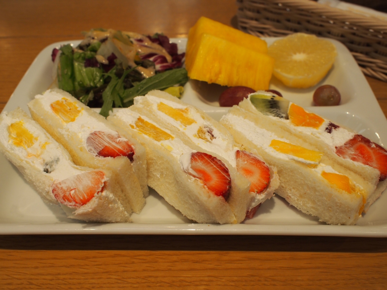 朝食付きのプランではフルーツサンドのセットをいただきました。