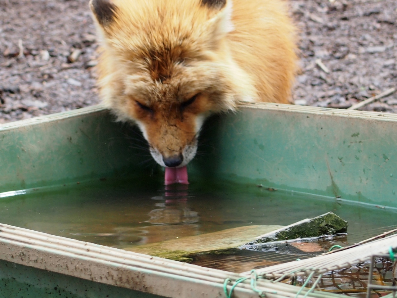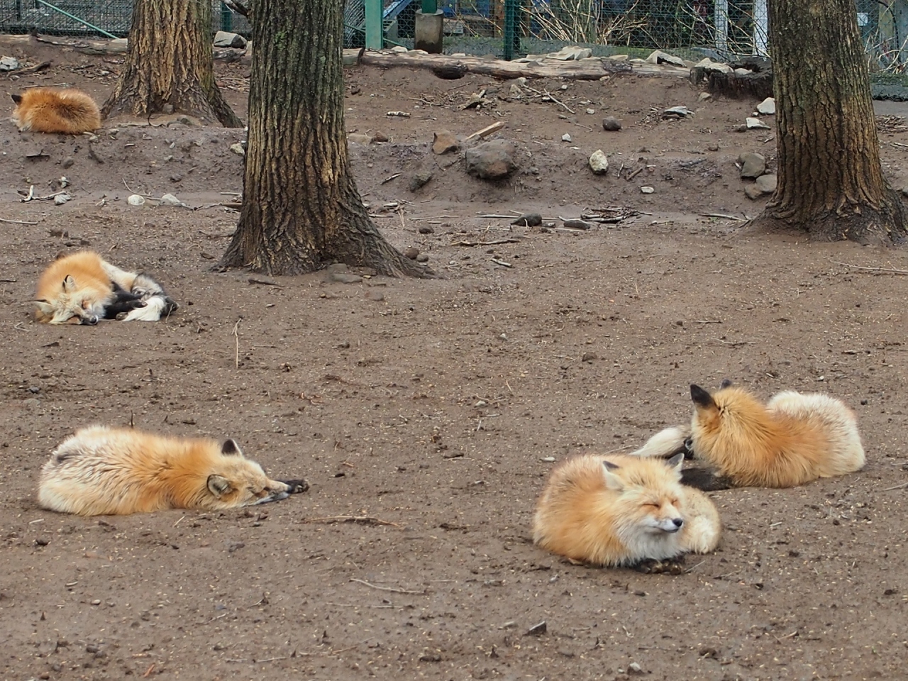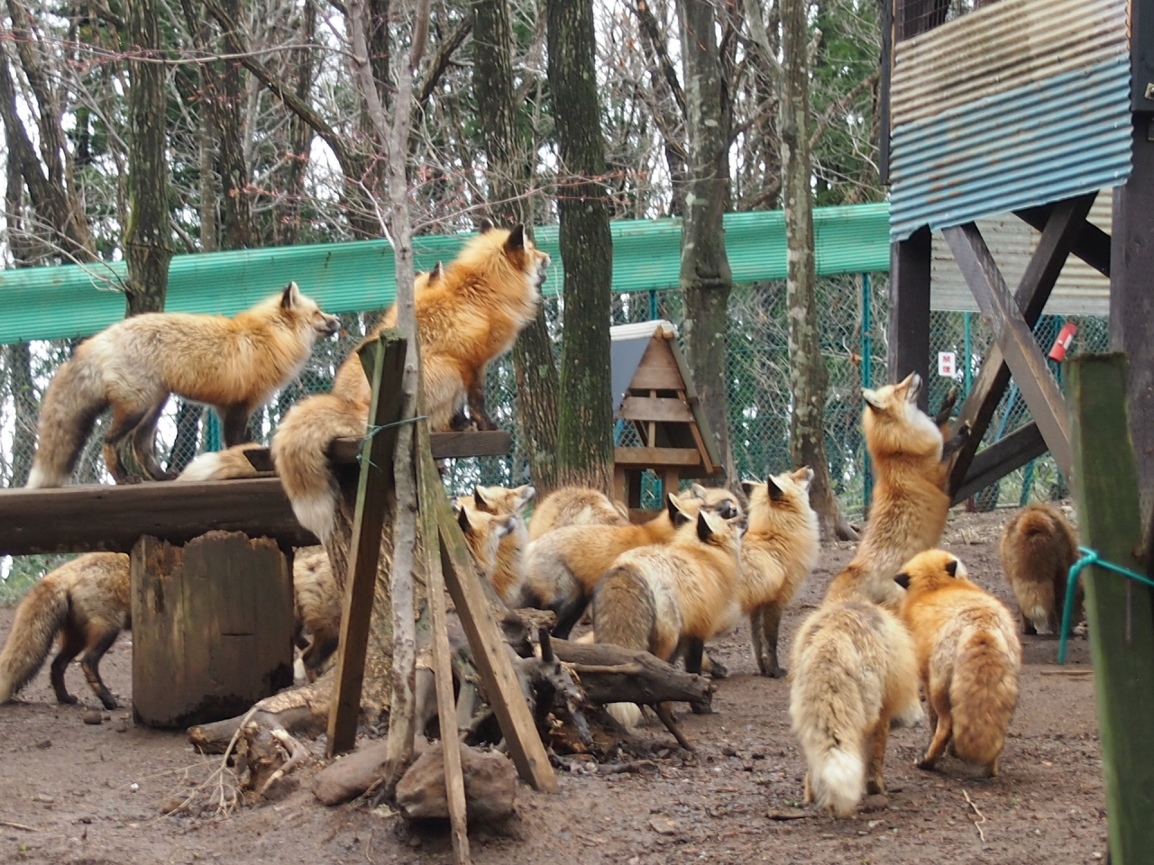 園内では放し飼いにされているたくさんのキツネが出迎えてくれます。