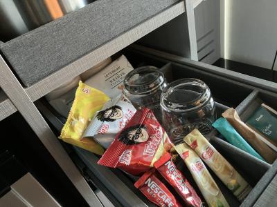 冷蔵庫のドリンクやスナックが無料。連泊なら追加あり。