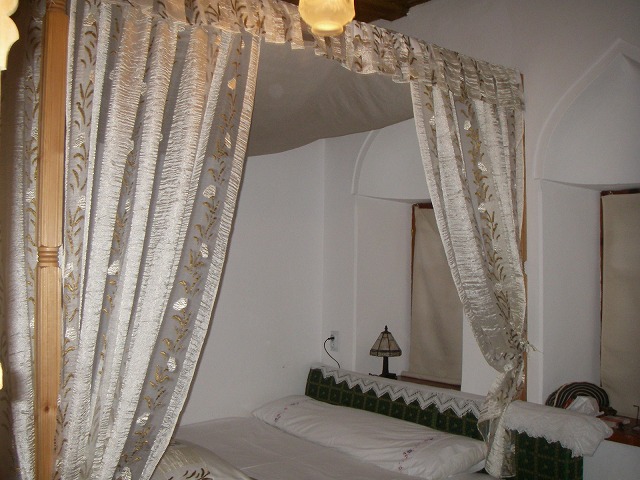 2寝室、広いDK,浴室も超豪華。広さは50?は優にある。これで一泊150ユーロは断然お得。(3人料金朝食込み)高台にあり、旧市街まで歩いて10分以内。家族経営らしく、全部で5室くらいの小規模ホテルだが、それだけに、暖かい雰囲気がよい。近くにモスクや神学校もあり、朝夕のコーランの合唱など、居ながらにしてイスラムの空気を感じられる。