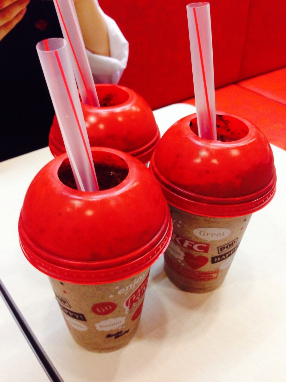 友人とケンタッキーでクラッシャーズを飲んで来ました!シャキシャキした氷の入ったひんやりドリンクでした。いくつか種類があったのですが、私はココアとクッキーの味の物を選びました(^^) 量も沢山入っているのに値段も400円程なので、夏、喉が渇いたときなどにちょろっと寄って飲むものいいかなと思いました♪ただ、お店の回転が少し悪かったような気がしました(>_<)