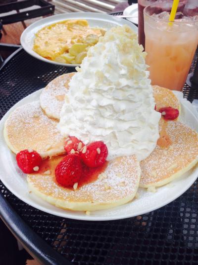 友人とエッグスシングスに行って来ました(^^) 量がとても多かったので、ストロベリーのパンケーキとチーズオムレツを一つずつ頼み、2人で分ける形で食べました! パンケーキが有名だと聞いていたのですが、ふわふわのチーズオムレツがすごく香ばしく美味しかったです。店内は半分程がテラス席で、旅行に来てる感覚で楽しく食べることができました!平日だったので比較的待ち時間も少なかったです。
