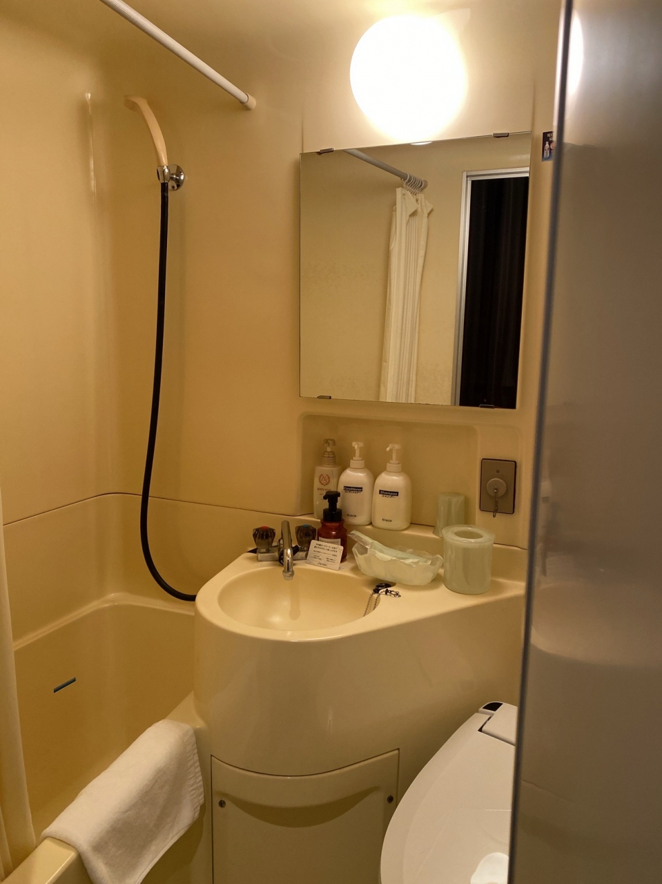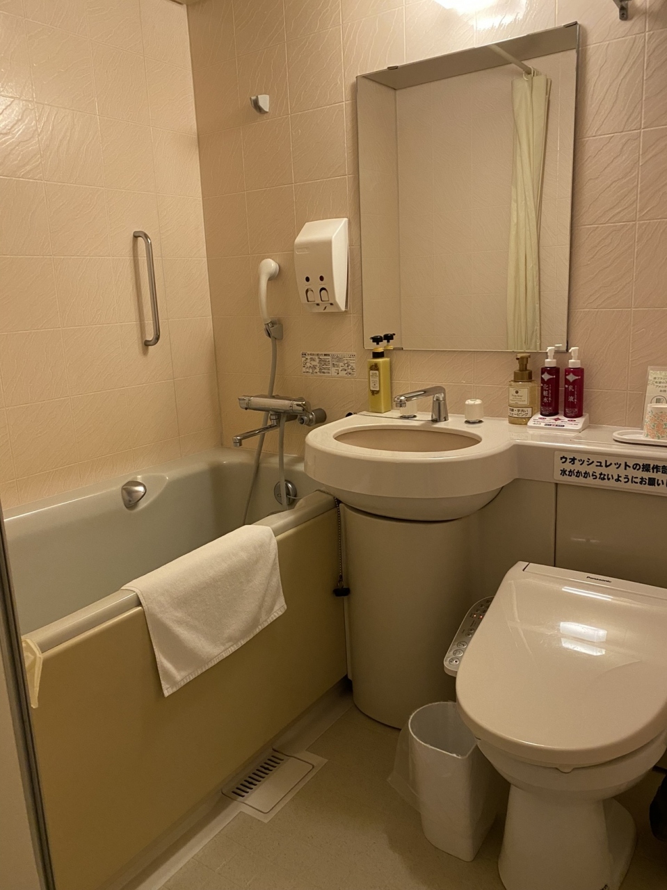 所用のためシングルルームに1泊した。部屋には広い机と座り心地のよい椅子がありデスクワークもはかどった。近くにコンビニやドン・キホーテがあった。夕食のための飲食店はないわけではないが、見つけるのに苦労した。宿の1階にはコップ1杯分だけ注いでくれる日本酒の自販機があった。ちょっと飲むのにちょうどよかった。無料の朝食ビュッフェもありがたかった。