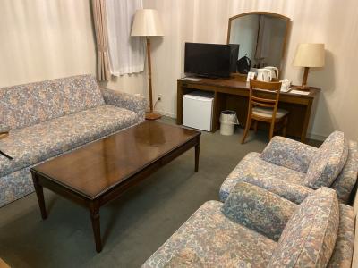 和室2部屋、洋室1部屋付きの広い部屋に2食付き1泊した。夕食バイキングは寿司からステーキまで様々な食事を楽しむことができた。とても美味しく大満足だった。しかたがないとはいえ、ひとつ難点は、部屋から風呂までの距離が遠く、冬なので廊下を歩くのが寒かったことか。