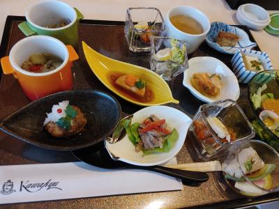 - 1日目はウィングスのレストラン、2日目は鶴雅の会席料理