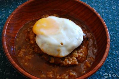 (ブライアンズ・ハワイアン・キッチンさんのロコモコもガイドブック等には日本人の味覚に合うと書かれていることが多いのですが、パテの肉質は、挽きすぎ感があり硬めのランチョンミートのような食感。グレービーソースもボケた感じ。量はオトナ1人でもかなりキツめ)