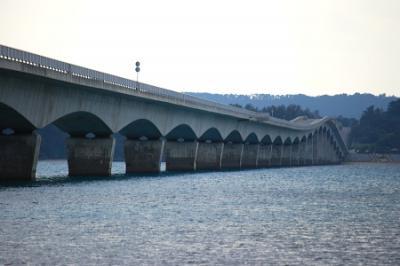 古宇利大橋を渡り始めると青く穏やかな遠浅の海が視界に広がります。