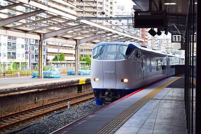 特急はるかが入ってきました。つるっとした顔でちょっと怖いですね。特急は...