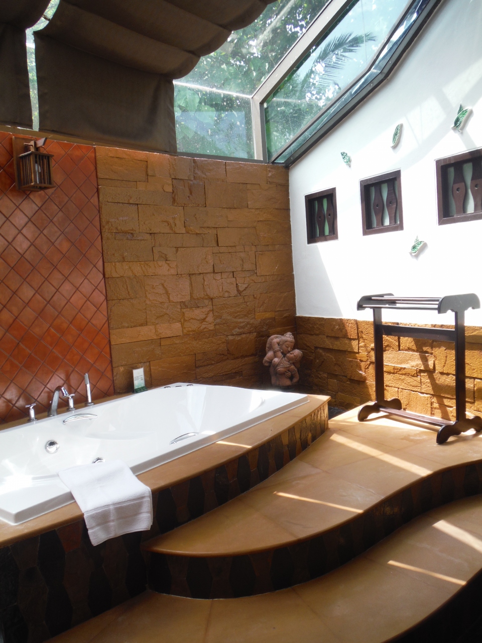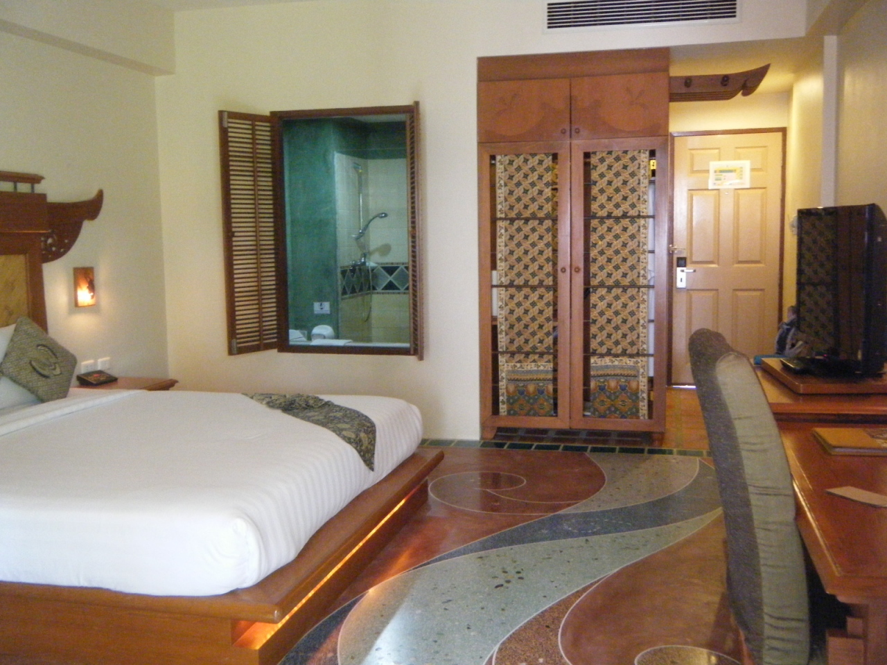 スウィートを予約していたのですが、アップグレードして戴けて、エグゼクティブでした。独立したバンガローで、広くて素敵なお部屋でした。バスルームのジャグジーが、壊れていたのが残念、直してもらったものの、ジャグジーをオンすると下水の臭いが凄くて、使えずじまい・・・