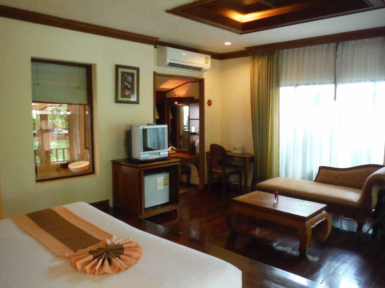 トロピカルシャレーは、2階建ての建物で、プール側に一階二階に各4部屋、山側2階に4部屋の12部屋でした。我が家は一階の角部屋、プールの前でした。お値段の割には広くて、かなり快適なお部屋でした。ただ、隣りの部屋の音が筒抜けなので、周りのお部屋が騒々しいと、かなりつらいです。騒音が気になる方は、ヴィラのプラスJrかプラスが、一棟建てなので、お勧めです。また、次の年にも宿泊したら、トロピカルシャレーのお部屋が増築されてました。新しいシャレーは、景観が悪そうでした。