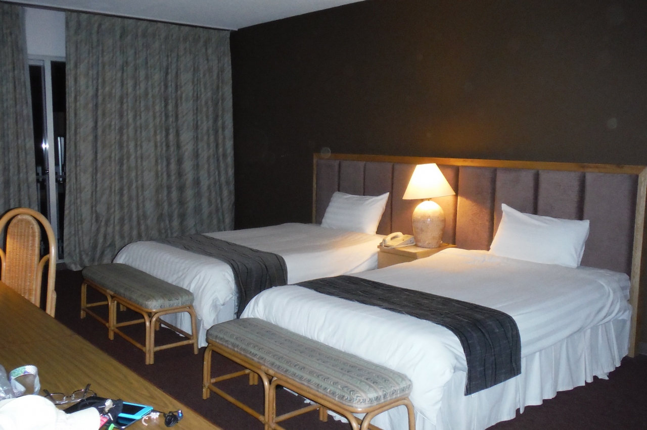 高台にあるので景色も良いですし、お部屋もツインベッドルームに、寛げる和室付き、夕飯とお酒を持ち込んで、のんびり出来ました。ちょっと狭いですが、温泉浴場が在るのも良かったです。朝食のビュッフェも、お値段の割には満足の内容でした。ただ、ホテルまでの道が、かなり解りずらいです。道案内の看板も少ないです。我が家も、相当迷ってなんとかたどり着きました。