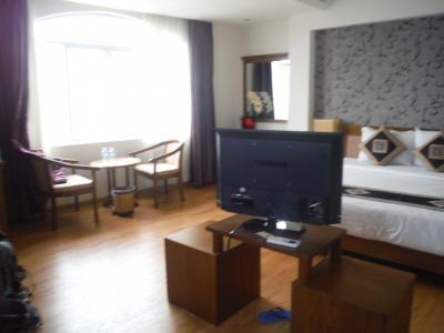 夕方チェックインしたら、予約した部屋が無いと言われて、一泊目はデラックスダブルの部屋に案内されました。差額は、きちんと現金で返してくれました。デラックスのお部屋は、窓が廊下通路側に在るので、廊下を通る人から丸見えでした。二泊目は、エグゼクティブのお部屋に移動、フォングーラオ通り沿いの窓の大きな明るいお部屋でした。どちらのお部屋も、掃除が少し雑な感じで、裸足で歩けるような床では無かったです。