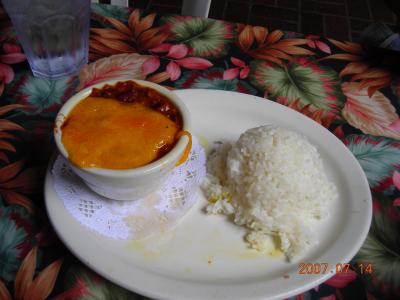 今回は、エッグベネディクト(ハーフサイズ)$8、チリ(ライス付)$5パンケーキ小(クーポンでサービス)