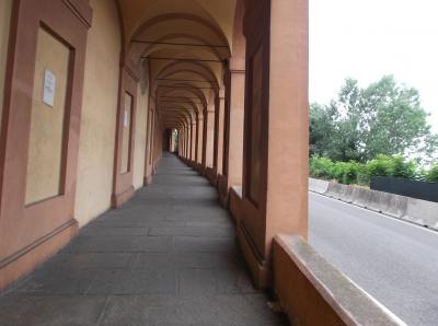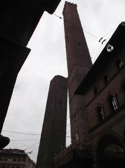 ボローニャの斜塔はマジョーレ広場から少し東に入ったところ。これはしっ...