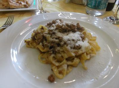 前菜は、スパゲッティーではなくタリアロッテ・ボローニア。ひき肉の味がさ...