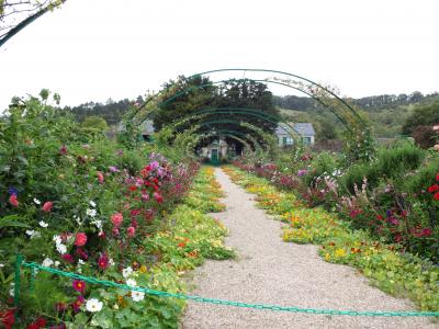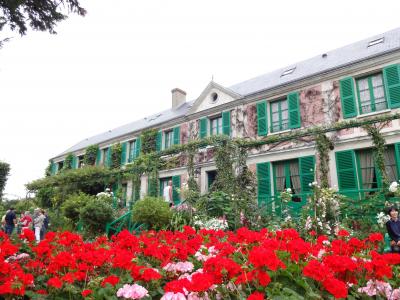 開園直後に入場。おかげで人影の少ない庭園を楽しめました。邸宅から少し離れたところにある池の睡蓮は、花時が過ぎてしまったのか数が少なく、モネの絵のような眺めとは言えませんでしたが、庭園全体としては夏の花が咲き乱れていました。前庭の真っ赤なゼラニウムに彩られた邸宅の中は、アトリエにはモネの作品が掛けられていましたが、他の部屋には浮世絵がいたるところに飾られていました。なんと歌麿や写楽が惜しげもなく、さんさんと陽光の入る場所に…。モネが日本に憧れていたというエピソードは知っていましたが、今回それがよくわかりました。
