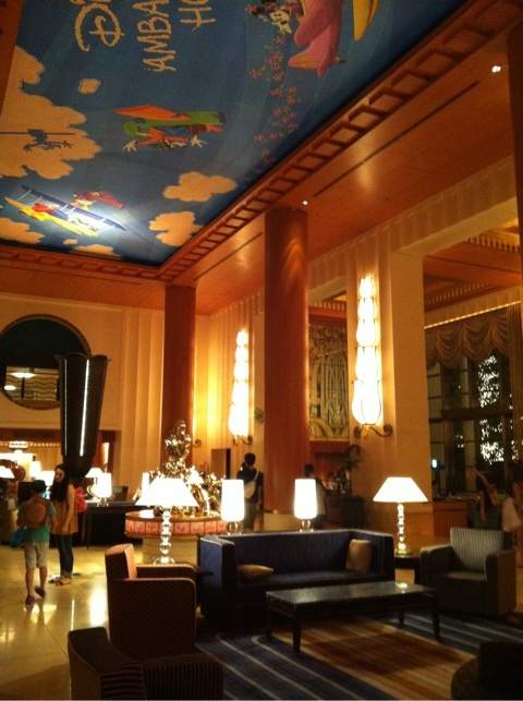 本当はミラコスタがよかったのですが、予算内の部屋が空いておらずこちらに宿泊しました。結果、とてもよかったです!ロビーも広くて開放的で、天井にディズニーの絵が描かれており、ディズニー気分が高まりました。(写真はロビーです)