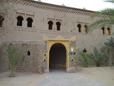 砂漠の入口エルフードから4WDに乗り約1時間砂漠の真横にあるホテルです。