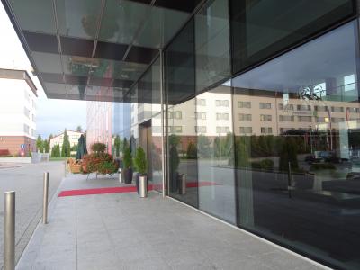 ワルシャワ中央駅から徒歩圏内の大きな交差点の南西角に立地し、高層で遠くからでも分かりやすいホテルです。