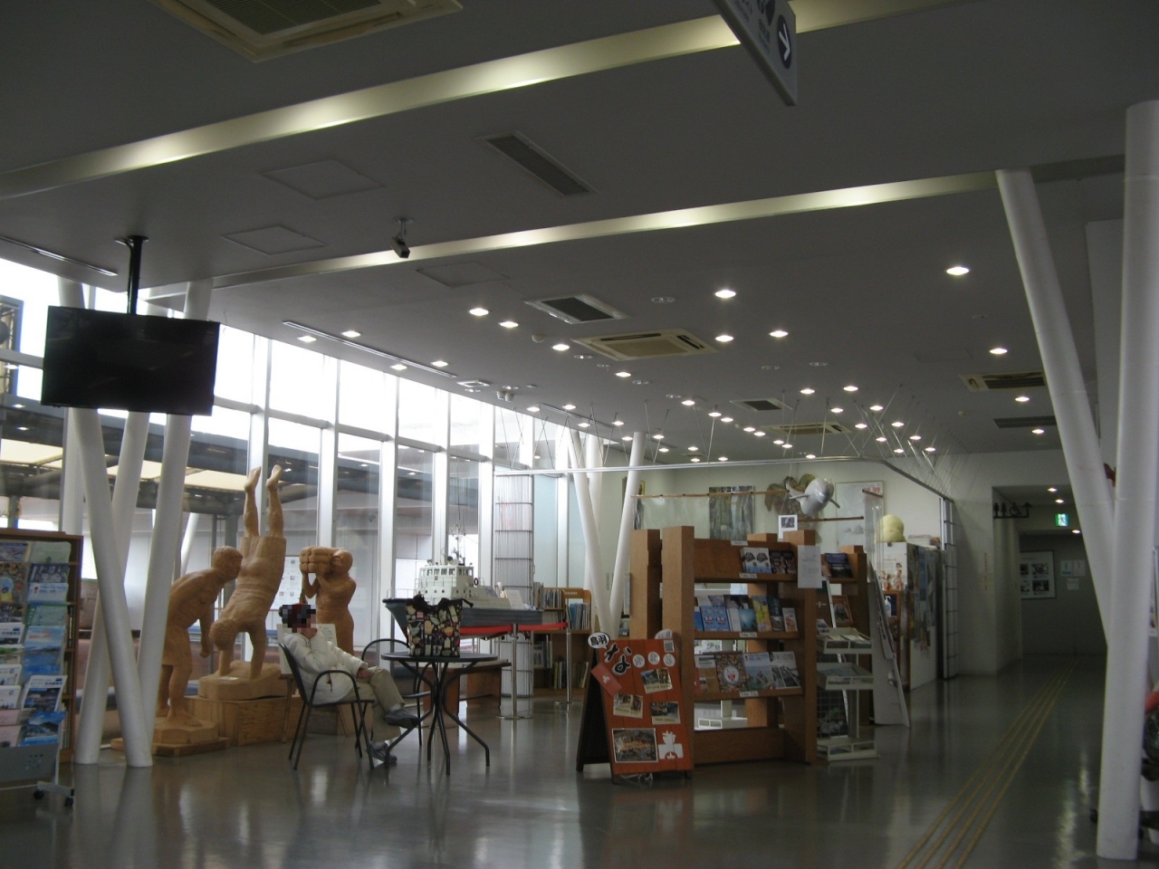鳥羽やその周辺の観光パンフレットや宿泊施設、食事処などのパンフレットが置かれています。海女さんの木彫像や船の模型などもあり、椅子やテーブルも置かれているので観光情報収集や出航までの時間を待つのに良い所です。
