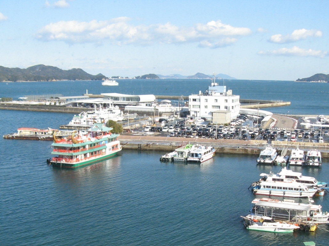 近鉄鳥羽駅から歩いて5分程のところにある港です。鳥羽港からの離島航路や観光の船が出ているほか、海上保安庁の船や漁船などたくさんの船が出入りしています。船を利用しない場合でも鳥羽マリンターミナルで観光情報を入手したり海を観ながらカフェで一服するのにも良い所です。近くの鳥羽の温泉宿「戸田家」から港の全貌が見渡せました。