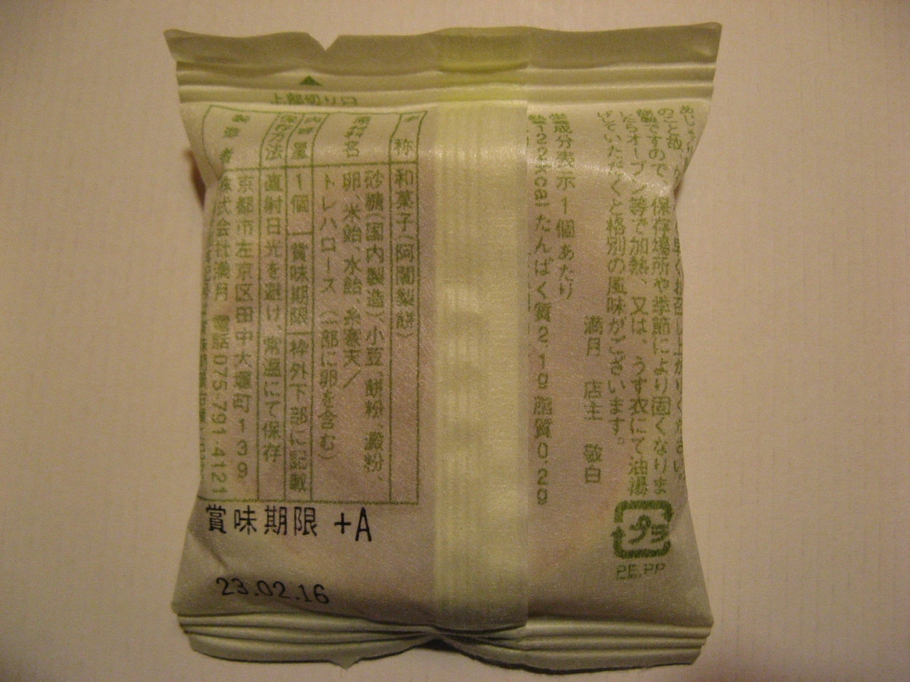 京都でよく知られている和菓子屋さん満月の代表的な商品の阿闍梨餅ですが、大阪でも買えることを初めて知りました。阿闍梨様のあじろ笠にちなんで名付けられた銘菓で、薄い餅生地に粒餡を包んで焼いた半生菓子は、皮は薄いのに不思議なくらいもちもちで、あっさりとした粒餡との相性もよく美味しいです。