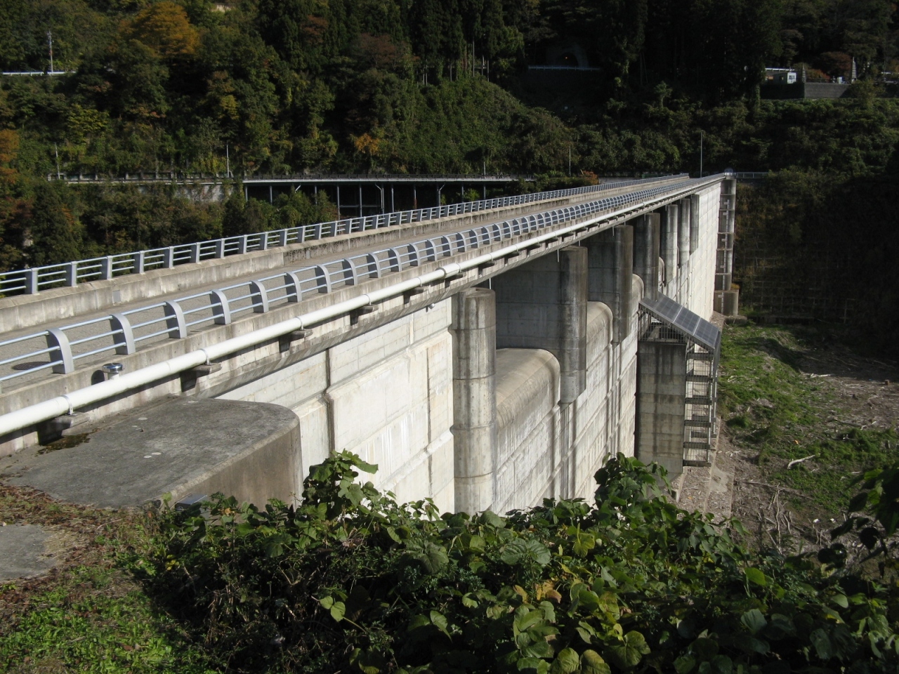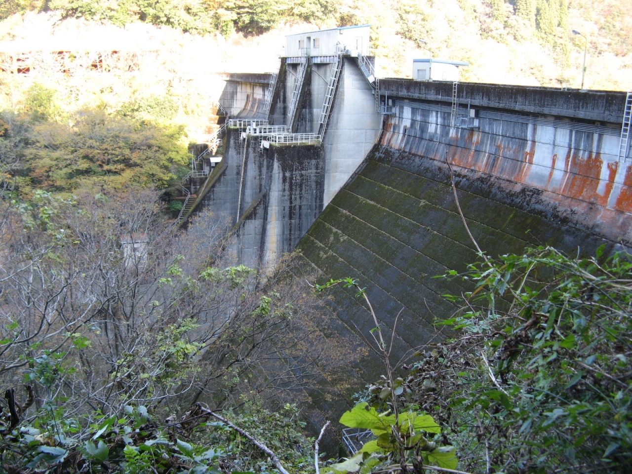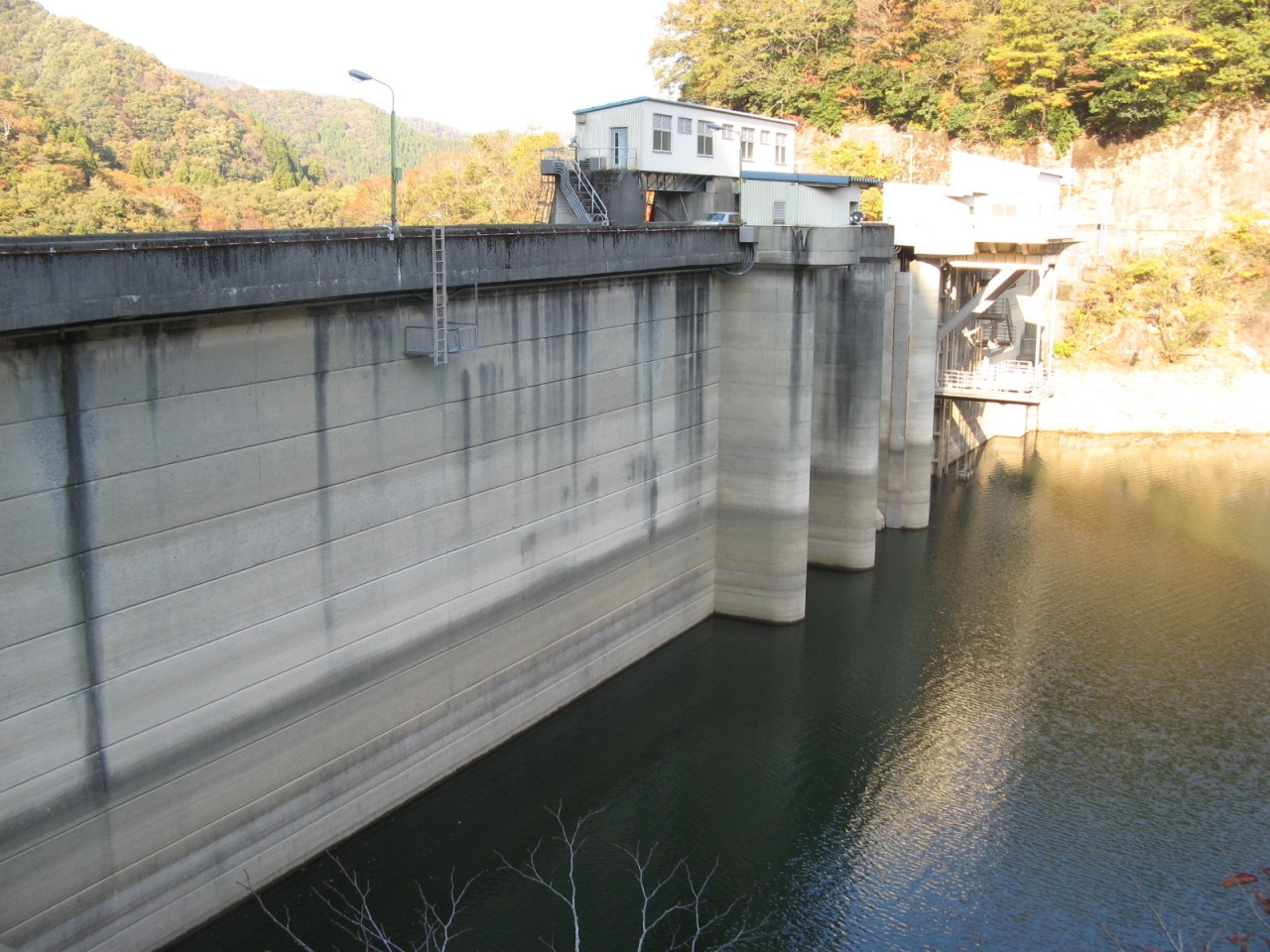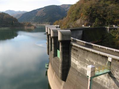 山中温泉に遊んだ時、8年ぶりに再訪しました。1964年竣工という古いダムはスキージャンプ式の減勢工を備えた洪水吐があり、苔むしていて時代を感じます。訪れたのが11月中旬と言うこともあって周辺の山々の紅葉風景と相まってとても風格がありました。ダムカードはダムサイトにある大聖寺川ダム総合管理事務所で頂くことができました。なお、3kmほど上流にある九谷ダムのダムカードも大聖寺川ダム総合管理事務所で頂くことができますので、九谷ダムを訪れた証拠写真を持って行かれることをお勧めします。