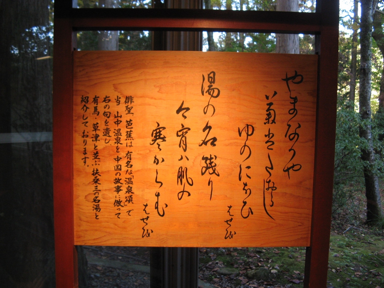 山中温泉街の外れ、国道364号線に面したところにあります。日帰り温泉も併設していて山中温泉に宿泊しなくてもここで温泉を楽しむこともできます。「今はやまなか」と洒落っ気たっぷりに名付けられた物産館がありお菓子や地元のお米・お酒、工芸品などが販売されています。且つて北陸鉄道北陸鉄道加南線を走っていた「しらさぎ号」の車輌が展示してあります。山中温泉に宿泊した帰りにお土産を買うのに良い所です。