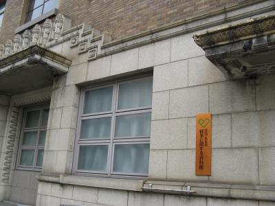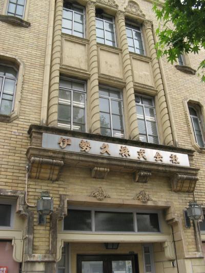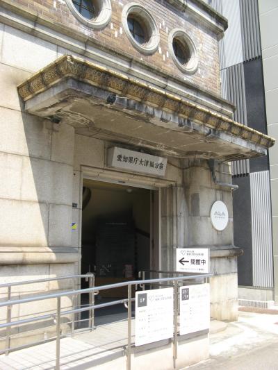昭和の初期に建造された3階建てのビルです。1階は石張り、2、3階の壁面はタイル貼りで窓回りには螺旋状の飾り柱、その上部にも凝った飾りが付いています。現在も現役の社屋として使われているため中に入るのを遠慮しましたが、隣にある「愛知県庁大津橋分室」と並び建ち歴史的な景観を形成しています。