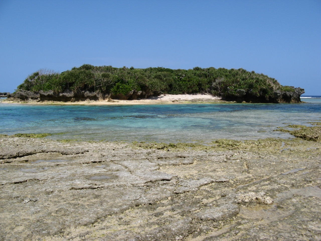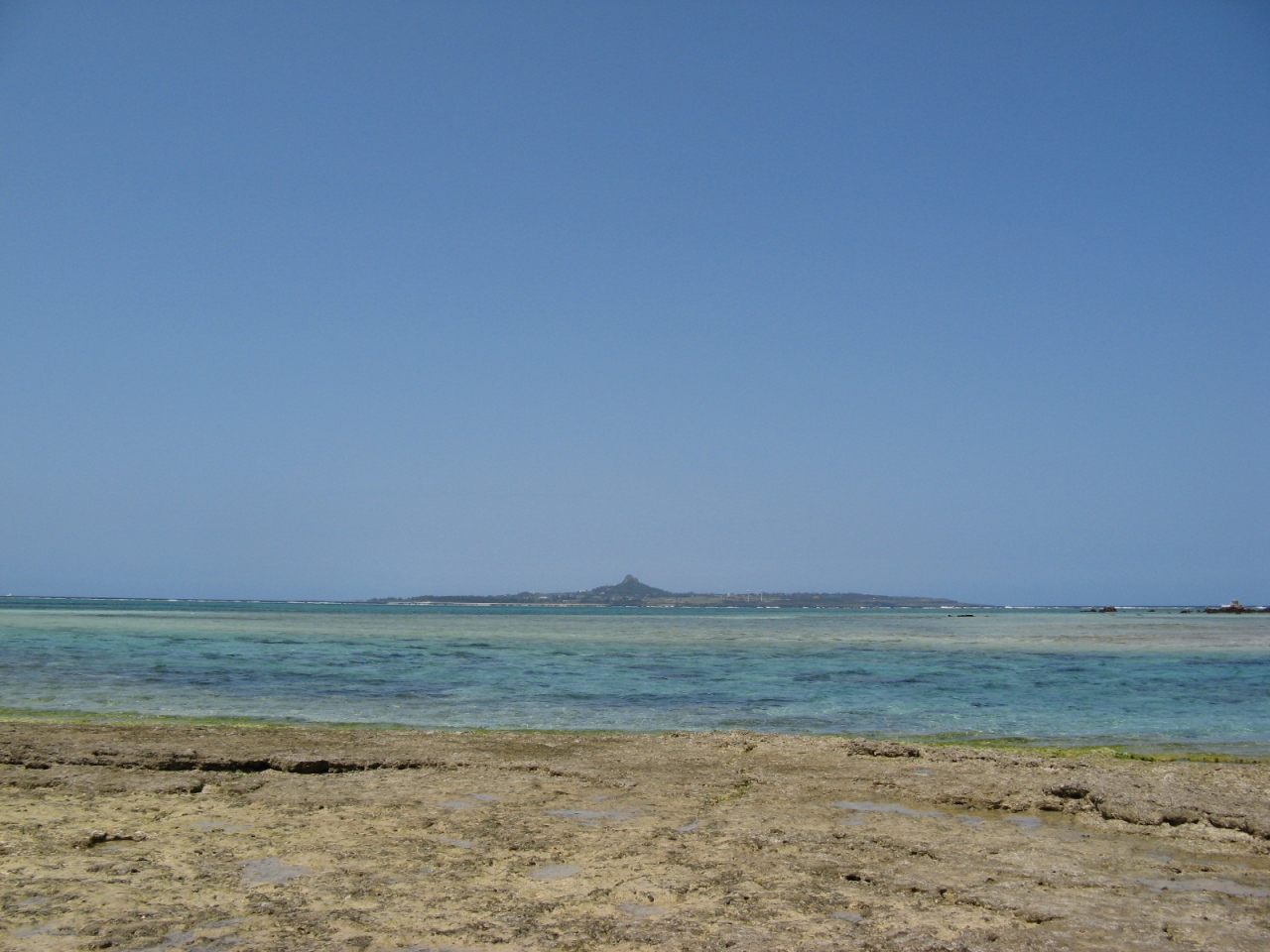 本部半島を一周するときに“備瀬のフクギ並木”に行った後、「備瀬崎」に寄りました。場所は本部半島の最北端、“美ら海水族館”から車で5分、フクギ並木を通り抜けたところです。ここには、これまで三度来ていますが、いつ来てものんびり出来ます。沖縄本島の有名なビーチや海はほとんど行きましたが、これほど綺麗で人の少ないビーチはあまりありません。砂浜はそれほど広くありませんが、浅瀬の岩場や潮溜まりがあり、泳がなくてもいろいろな魚やカニなどが観察できます。もちろん、シュノーケリングを楽しむにもピッタリの場所です。時期によっては、結構、潮の流れが速い場所なので、泳ぎが得意でない方や子供は十分注意してください。