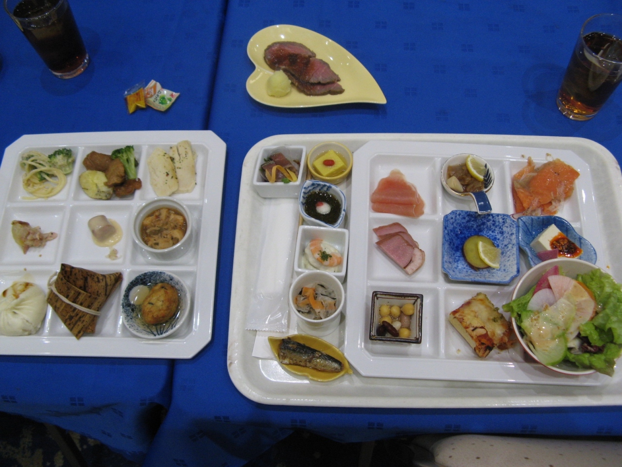 去年に続いてやって来ました。場所は、沖縄大学の前、県道45号線沿いにあります。これぞ、沖縄の食堂という典型的な大衆食堂です。午後の3時に入店したのですが、そんな時間帯なのにお客さんでほぼ一杯、やはり地元の人気店です。この日は、私が、“中味汁定食730円”と家内が“ソーキ汁定食780円”を注文しました。どちらも、目玉焼き、刺身、ご飯が付いています。二人でシェアーしながら頂きましたが、かつお出汁のきいた汁はコクがあり大変美味しかった。味、ボリューム、値段ともに大満足です。