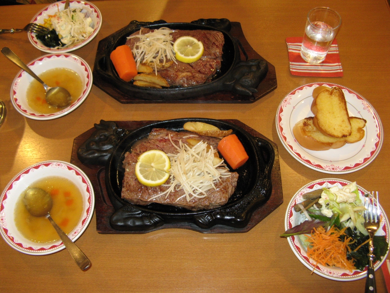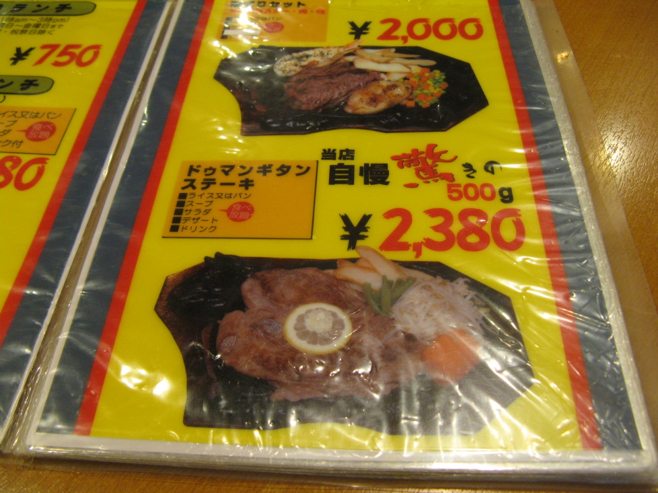 「ステーキハウス Mr.マイク」は、那覇市辻にある、リーズナブルでボリューミーなステーキが自慢のお店です。店内は広くて、綺麗にされています。ステーキ以外にも、えびフライ、ピザ、カレー、和食、丼物やランチメニューもあります。この日は、家内ともども、500gもある“ドゥマンギタンステーキ¥2380”を頂きました。肉はおそらく豪州か米国産で、ジューシーということからは遠いですが、スープ・サラダ・ドリンクは食べ放題で、デザートもついていました。このセット価格を考慮すれば、CPは悪くないと思いました。