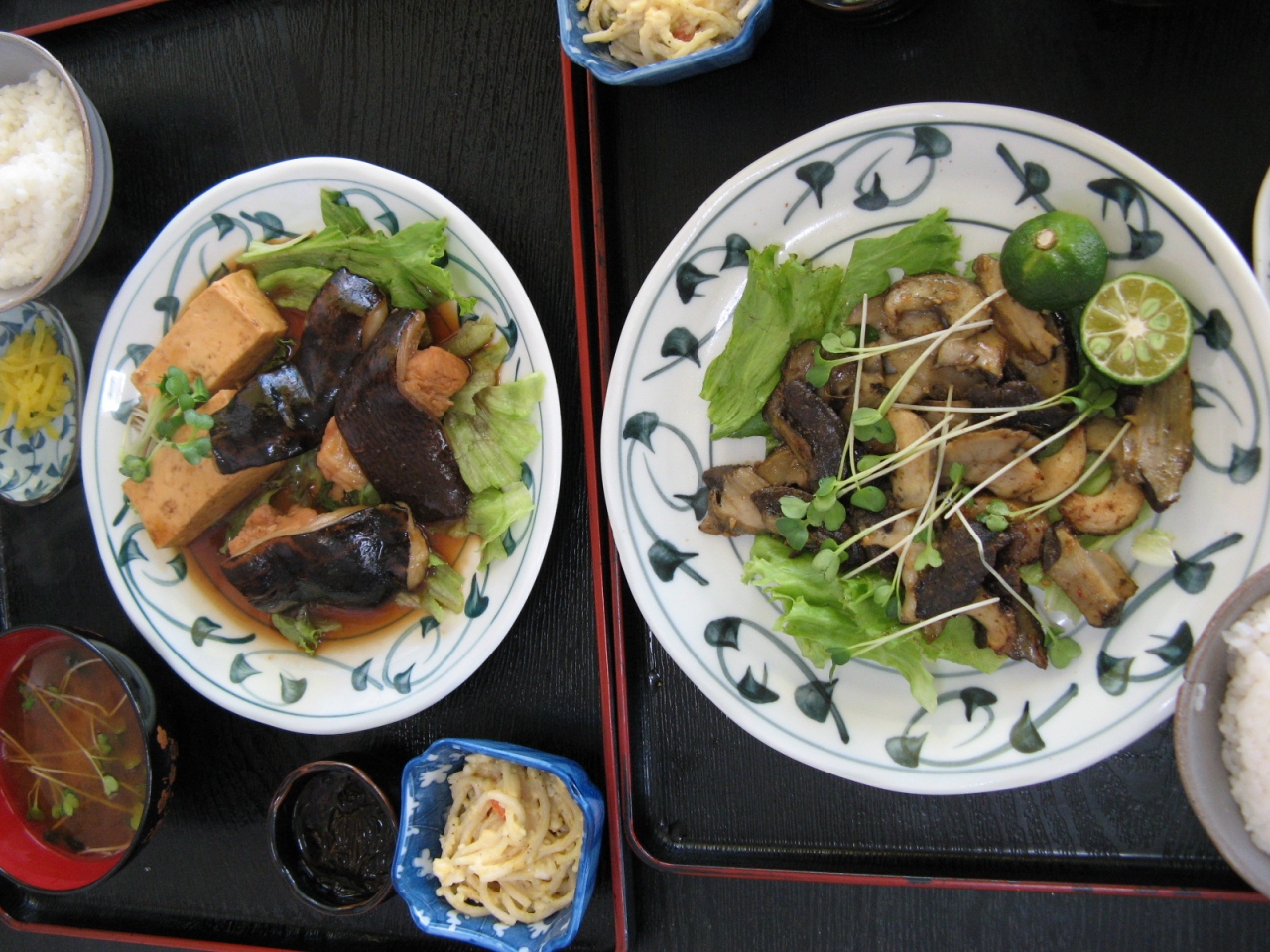 「あやぐ食堂 」さんは、ゆいレール首里駅のすぐ東の“汀良の信号”を北に200mほど行ったところにあります。店内は座敷席とテーブル、カウンター席があり、お茶、水はセルフサービスという典型的な沖縄の食堂です。メニューは100種類はあるでしょうか?、その中から、この日は、私が“チキンから揚げ定食570円”、家内が“さんま蒲焼定食570円”を頂きました。どちらも、味噌汁やサラダがついていました。いつもながら、美味しさとボリュームと値段の安さにびっくりです。