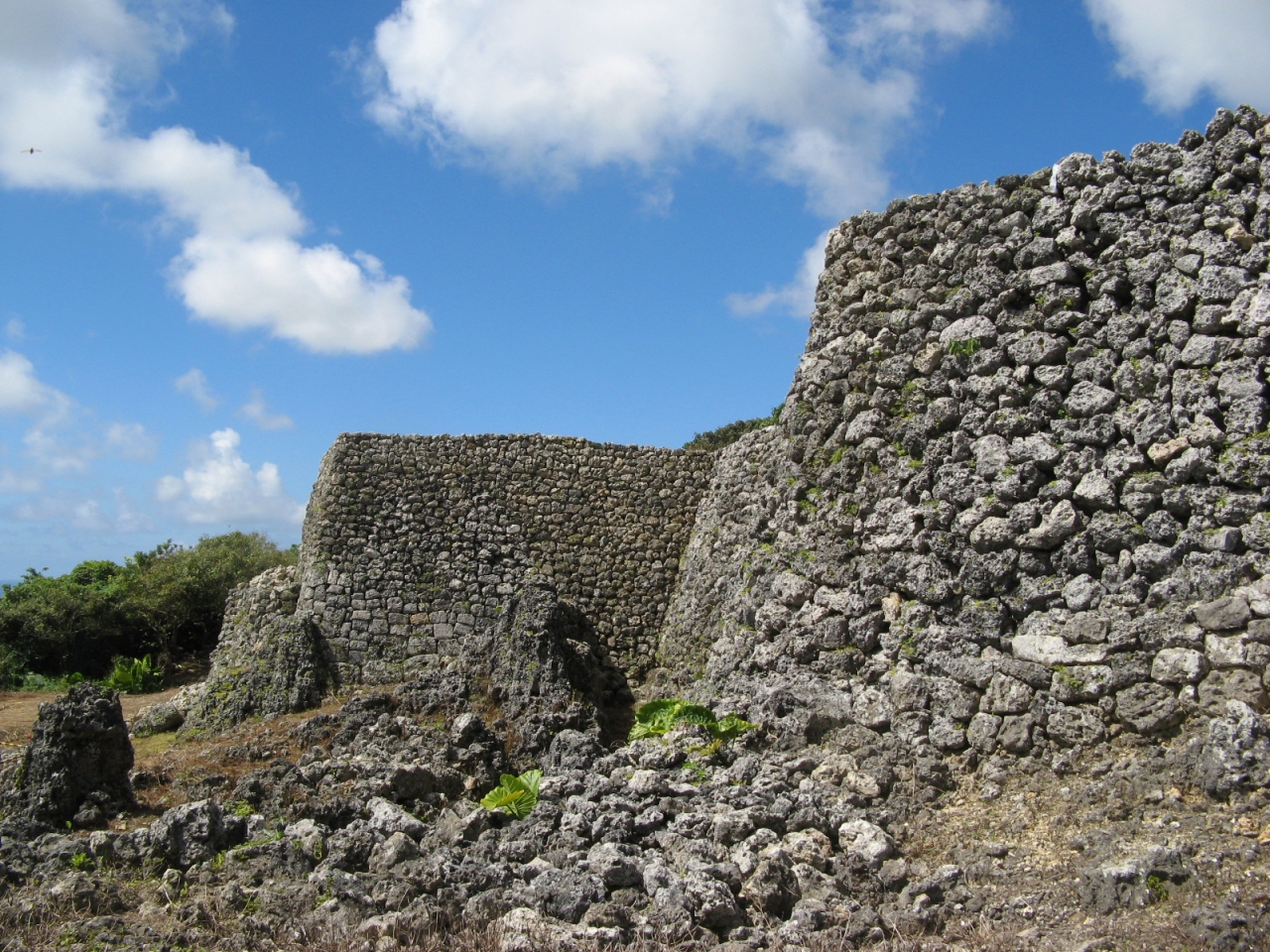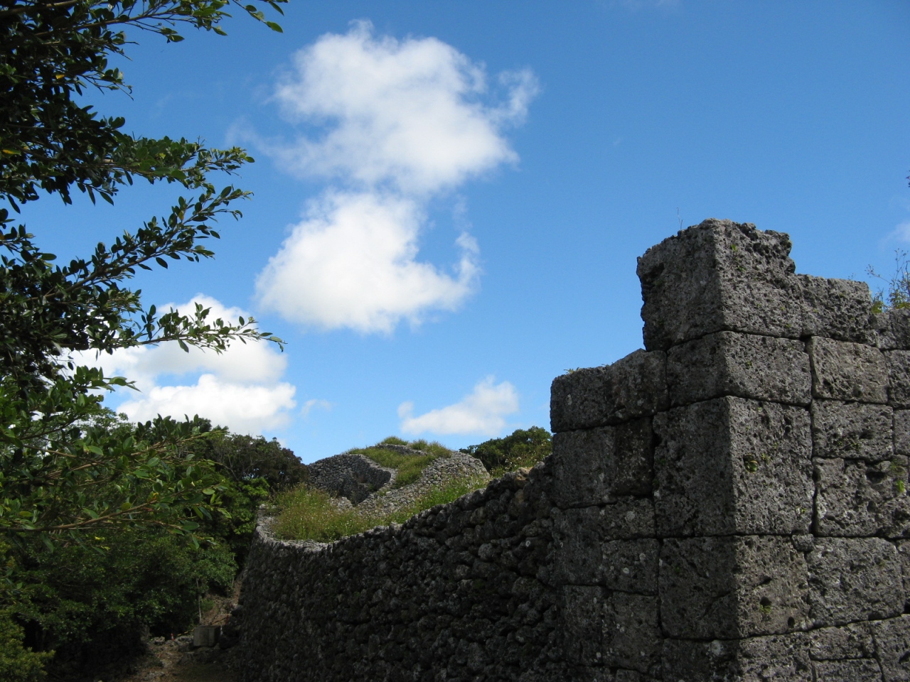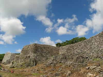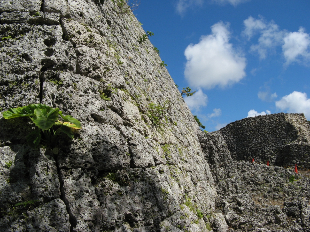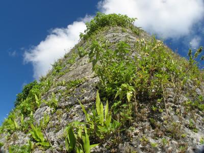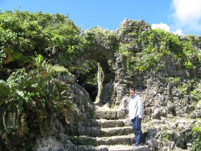 本島南部観光のときに「糸数城跡」に寄って来ました。場所は南城市玉城の県道48号線からわき道にはいった糸数村にあります。糸数村落南側の断崖上に築かれた古城で、現在は、琉球石灰岩で作られた石垣が残っている程度で、訪問したときも石垣の復元工事が行われていました。足場が悪いところですが、石垣の上に登るとわずかですが視界が開け、遠くに海が見えました。観光客がほとんど行かないような場所ですが、昔のグスク(城)を感じてみたい人にはお奨めします。