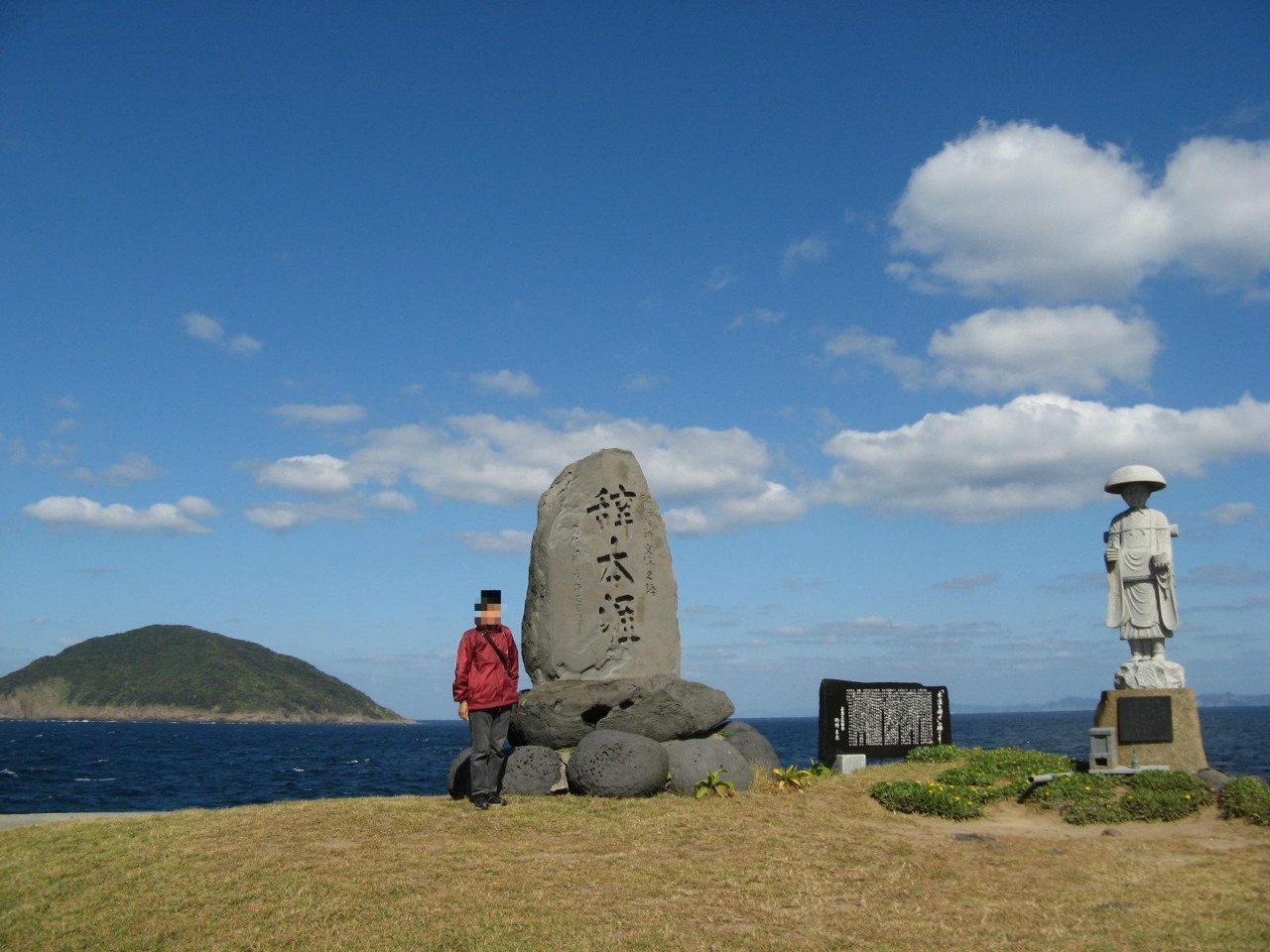 五島の福江島を一周観光したときに、「空海記念碑 辞本涯」を訪ねました。場所は福江港から国道384号線と県道233号線を走って1時間足らず、福江島の西北、三井楽町の柏崎にあります。ここは、“遣唐使”が渡航する船の日本最後の寄港地でした。“辞本涯”とは“日本の最果ての地を去る”という意味で、空海が書物に残した言葉だそうです。空海像と辞本涯碑が立つ丘の上からは東シナ海の絶景が望めました。空海たち遣唐使はどんな思いでこの地を離れて唐に向かったのでしょう。