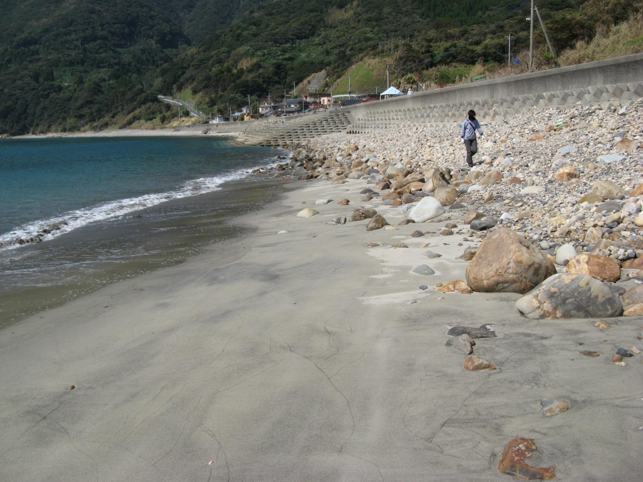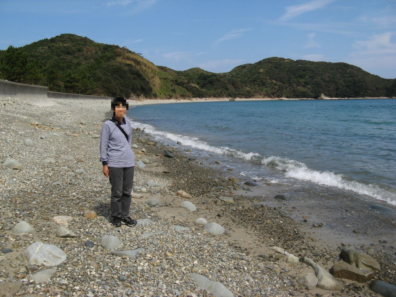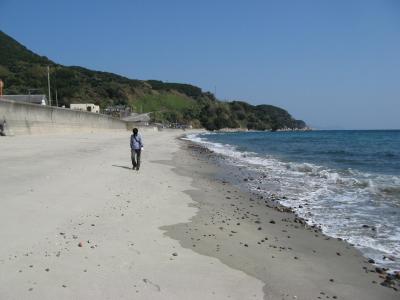 「 芦浜海水浴場」は下甑島の東の中ほどにあります。長浜港から車で5分ぐらいの位置にあります。約700メートルの海岸線を持つ静かな入江に臨む芦浜海岸は、満潮のときは磯浜で、訪れたときは引き潮で、それほど広くは無いですが白い綺麗な砂浜が現われていました。夏場には快適な海水浴場(営業期間7月~8月)になっており、シャワー施設も完備されています。近くにはキャンプ場もありました。訪れたのが、季節外れの10月だったので人っ子一人いない静かな海岸を楽しむことが出来ました。
