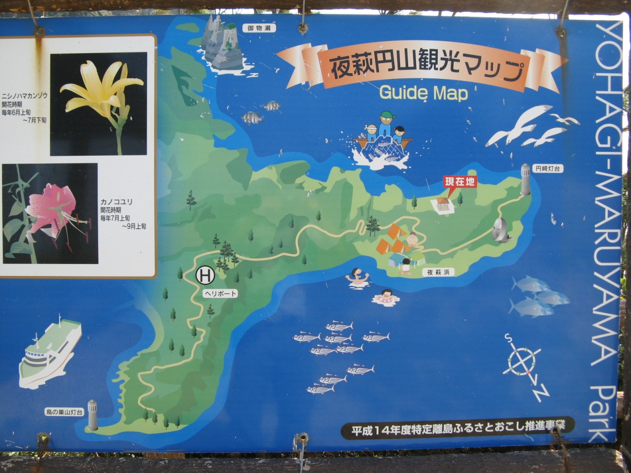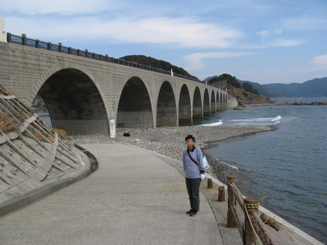 「鹿の子大橋」は上甑島と中甑島の間に架かっている橋で、上甑島の里港から県道348号線と県道351号線を走って10分あまりのところにあります。平成2年に完成した、橋は海峡の波をイメージした全長240mのアーチ橋で、少し大げさに言うと、古代ローマ遺跡の水道橋の様な形のものでした。橋の名前は、甑島を原産とする“鹿の子ユリ”にちなんだものらしいですが、橋のイメージとは合わないなあーと思いました。わざわざ見に行く様なものではありませんが、周囲は絶景が続く場所なので近くに行ったら車を停めてご覧下さい。