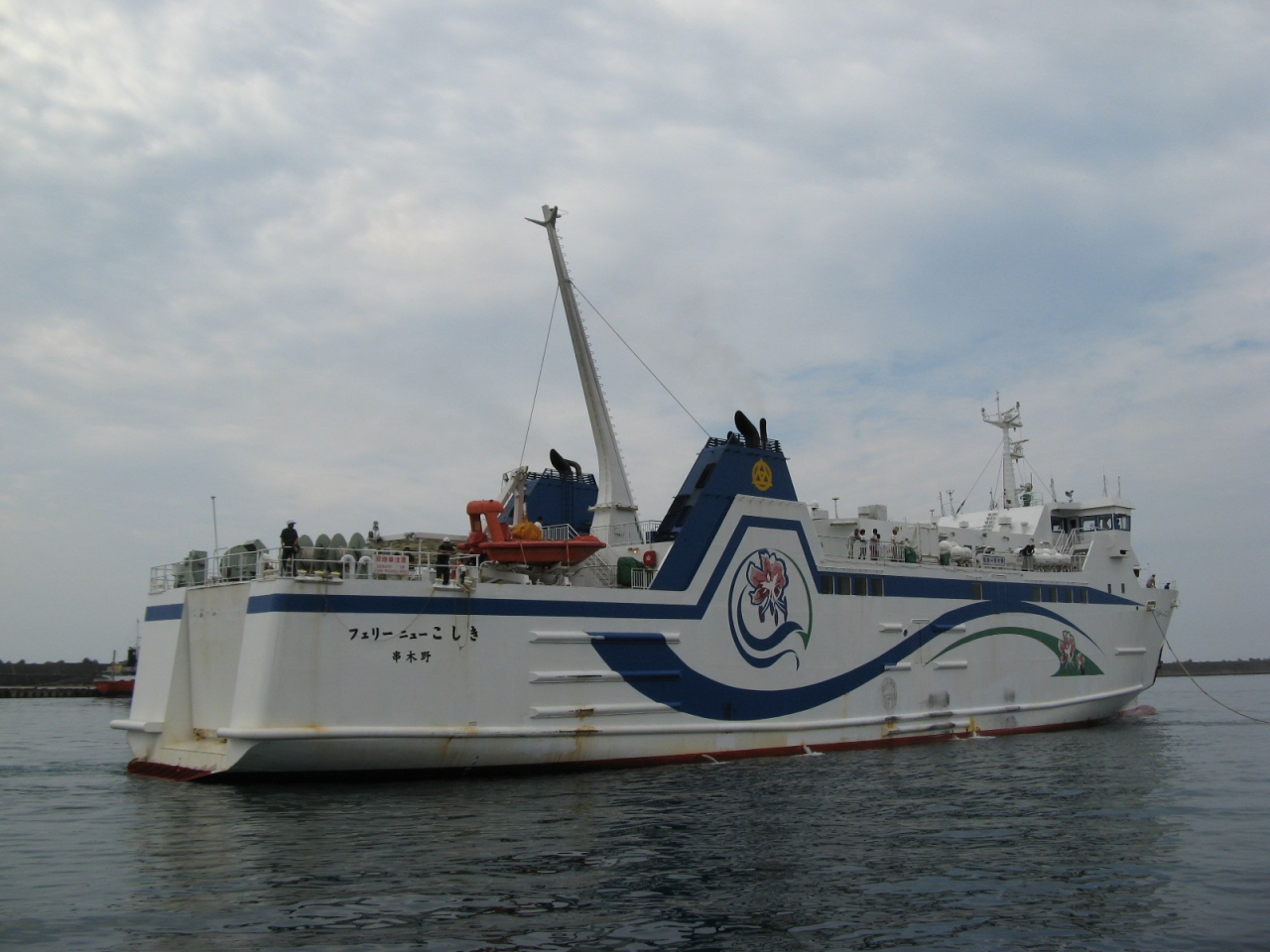 九州本土の串木野と甑列島を結ぶ船で、高速船とフェリーがあります。甑島の途中寄港地によって航海時間は異なりますが、おおむね、高速船で1時間~1時間30分、フェリーで1時間40分~3時間の航海です。甑島を訪れたときに“フェリーニューこしき”に乗船しました。総トン数 940トン 、旅客定員 2等指定(20名)・2等(380名)計(400名)、積載可能車両台数 乗用車19台+8tトラック6台 又は乗用車41台、 速力 17.5ノットの船で、甑島に近づくにしたがって、絶景が楽しめました。
