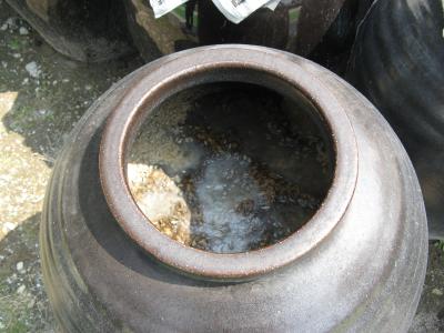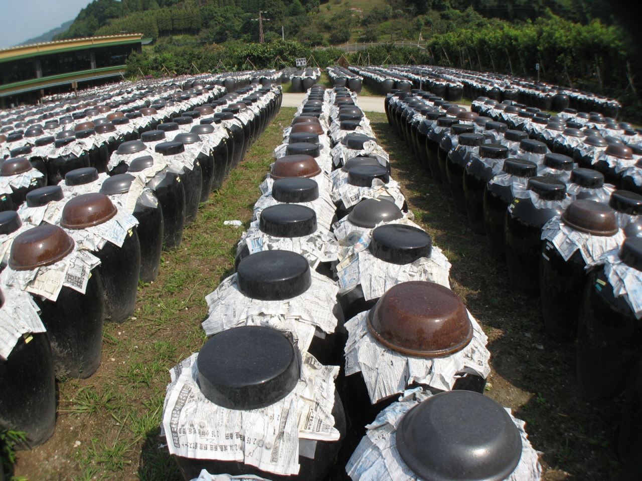 九州一周旅行のときに、『福山町と言えば“黒酢”でしょう!』ということで、どうしても“壷畑”が見たくて、「黒酢本舗 桷志田」に寄せてもらいました。お店は国道220号線を一筋山側に入ったところにあります。1階は売店で、2階がレストランになってます。