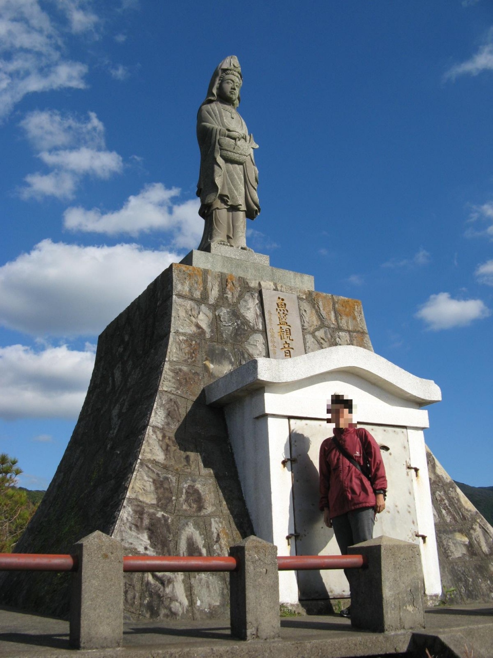 福江島を一周観光したときに「魚藍観音 」を参拝しました。場所は、福江港より国道384号線を40分ほど走ると三井楽町の貝津の集落に着きます。その集落の海が見える小高い場所に「魚藍観音 」は立っていました。「魚藍観音 」は東シナ海での大漁と海の安全を祈って建てられたもので、鯛を抱えた観音様は眼下に広がる海を穏やかに見守っていました。人っ子一人いない静かな丘の上からは、天気が良かったこともあって、高浜や頓泊、観音崎など想像を絶するすばらしい景色を見ることが出来ました。