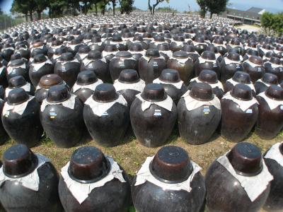 スタッフの方が丁寧に“壷畑”を案内・説明してくれました。青い空の下に整然と並ぶ数p千の壷は見ごたえがありました。帰りに、お土産としてブルーベリー酢2800円とリンゴ酢2500円を購入しました。- 旅行時期